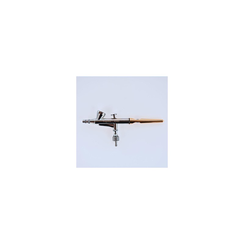 Dispositivo neumático que genera un fino rocío de pintura. Posee una pistola de doble acción, contenedor integrado de 0.2cc, aguja de 0.2mm y adaptador para manguera de PVC. Ideal para trabajos finos a medianos.